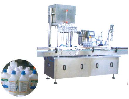 積式流量灌裝,觸摸屏顯示、PLC控制。裝量大小調節方便,該機可與旋蓋機(壓蓋機)-貼標機等組成生產線。